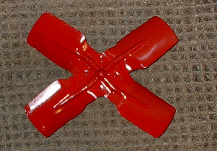 Remember that nasty looking oil filter canister? This is the same canister after a session in the bead-blast cabinet, some red paint and new decals from Just8Ns.com. |